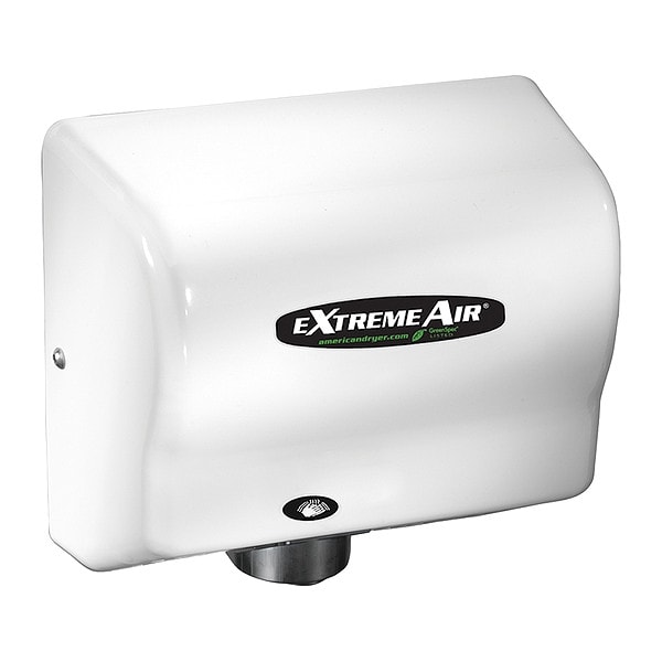 Hand Dryer, Dry Time 8 sec, Cover Material ABS, Color White, ADA Compliant No, Sound Level 56 dBA, Voltage 110/240V AC, Heat Setting Levels High, Low, Medium, Compatible with HEPA Filter No, Includes HEPA Filter No, Dryer Activation Automatic, Mount Type Surface, Finish Epoxy Painted, Standards cULus, ETL, GSA, Includes Security Wrench, Tamper-Resistant Screws, Air Flow Rate 19,000 lfm, Maximum Air Temperature 135 Degrees F, Features Universal Voltage, Product Type Hand Dryer, Current 20 A