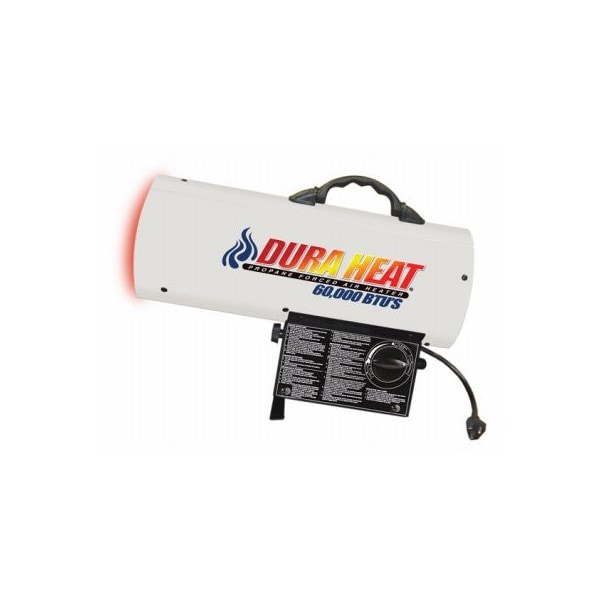 60,000 BTU, Portable LP Heater, Heats Up To 1500 SQFT, Continuous Spark Ignition, Single Handed Ignition, Adjustable Heat Angle, Automatic Overheat ShutOff, 10' Hose Regulator Included, Operates 7 14 Hours On Single 20 LB, Cylinder Sold Separately, Uses 20 LB To 100 LB, LP Cylinder, Requires Electricity For Proper Operation