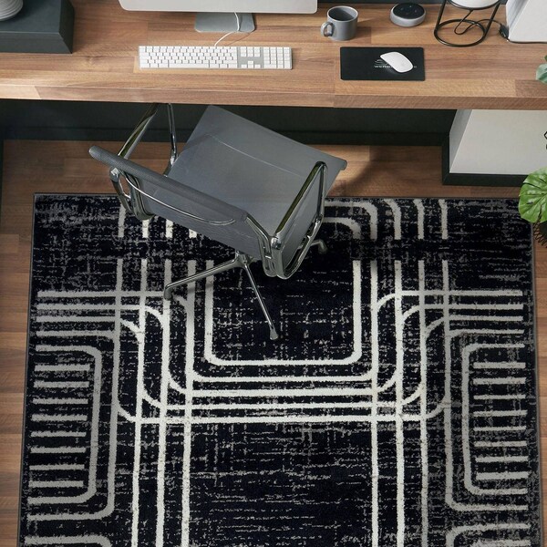 Elevate your decor with this modern geometric area rug, where crisp lines and high-contrast black and ivory hues fuse to create a timeless statement piece. Thoughtfully crafted with a 0.39-inch pile height, it slips easily beneath furniture and stands up to heavy foot traffic. The durable, easy-care materials resist stains and shedding, making regular maintenance a breeze. Whether your style is minimalist or eclectic, this rug adds a layer of sophistication and practicality to any room in your home. Durability & Safety: Designed for long-lasting durability, this rug is a reliable choice for high-traffic spaces throughout your home. Crafted from safe, non-toxic materials, it provides a comfortable and secure surface for kids and pets. The sturdy jute backing enhances stability and longevity, ensuring years of dependable use. To prevent shifting and extend the life of your rug, we recommend using a rug pad for added safety and comfort. Comfort & Convenience: Expertly machine-woven using advanced technology, this rug offers the perfect balance of softness and durability. Its versatile design makes it an excellent addition to any room, effortlessly complementing various home decor styles. Available in a range of sizes, it fits seamlessly into different spaces. Designed for effortless maintenance, it requires only regular vacuuming and simple spot cleaning with mild detergent to maintain its beauty. Please note: While we strive for accuracy in our digital images, actual rug colors may vary slightly due to monitor settings. Minor variations in length and width may occur due to the manufacturing process, and patterns may adjust slightly depending on the selected size and shape. Spot clean with a solution of mild detergent and water or clean professionally. Regular vacuuming help rugs remain attractive and serviceable.