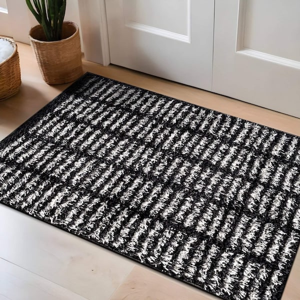 Bohemian, Contemporary style. Style your spaces with organic flow with this Bohemian Stripe Lines shag rug featuring a cozy medium pile. The soft Bohemian Stripe Lines pattern adds inviting texture that families love. This version comes in deep Anthracite Dark Gray. It's Bohemian Stripe Lines design and medium pile provide a stylish yet cozy layer for living rooms, bedrooms, or play spaces. This rug brings soft , flowing texture and enhances depth with It's smoky gray tone, making it a versatile choice for modern households. Craft ed from 100% Polyester with a durable jute backing, It's kid and pet friendly, easy to clean, stain and fade resistant, and no shedding. Vacuum oft en, spot clean as needed, and rotate periodically for even wear. Durable Polyester Shag Construction - Made from 100% polyester with a sturdy jute backing, this medium-pile (0.57 in) shag rug is ideal for high-traffic spaces like living rooms, hallways, and entryways. OEKO-TEX certified and safe for family use. Use with a rug pad to prevent slipping and extend longevity. No-Shedding & Easy Maintenance - With a soft 0.57 in pile, this polyester shag rug is engineered to resist shedding, stains, and fading-making it low-maintenance and ideal for everyday messes. Spot clean or vacuum as needed. Soft & Pet/Kid Friendly - The plush medium pile offers a cozy feel underfoot while resisting messes and wear. Perfect for homes with children or pets, providing both comfort and durability. Please note: Colors may vary slightly due to monitor settings. Minor size and pattern variations are normal due to the manufacturing process.