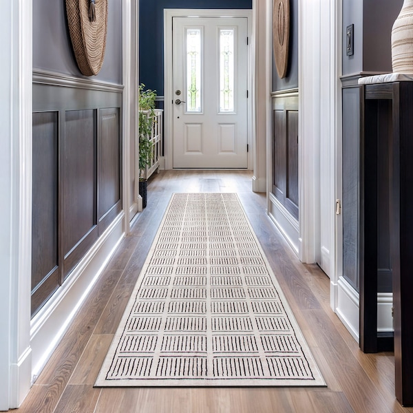 Elevate your space with this contemporary geometric rug, where clean lines and bold patterns create a striking visual statement. Designed for both style and practicality, It's soft pile offers cozy underfoot comfort, while the machine-washable fibers make maintenance effortless. The non-slip backing keeps it securely in place, making it a perfect choice for high-traffic areas. Machine-Washable for Effortless Maintenance: Say goodbye to the hassle of spot cleaning-our rugs are fully machine washable, making upkeep simple and stress-free. Made from high-quality synthetic polyester, they maintain their shape and soft ness even aft er multiple washes. For small rugs, a standard home washer works perfectly, while larger sizes may require a commercial machine. Non-Slip Backing for Added Safety: No more shift ing or sliding-our rugs come with a durable, non-slip backing that keeps them securely in place on hard floors. Designed for kid- and pet-friendly homes, they prevent trips and falls while offering a stain-resistant, shed-free surface that stands up to daily messes. Soft & Comfortable for Everyday Living: Experience luxurious soft ness underfoot with our cozy, plush pile-perfect for busy households. Whether It's muddy paw prints or everyday spills, our rugs are built to withstand it all while adding warmth and style to any space. Eco-Friendly, Convenient Shipping: Shipped folded for reduced packaging waste. Simply lay flat upon arrival, and the rug will regain It's shape in a few days. Color and size may vary slightly due to screen settings. Vacuum carefully without a beater bar. Machine wash under a cold and gentle cycle. Do not use bleach. Line dry. Professional cleaning is recommended for stubborn stains. Please note that this machine-washable rug may shrink by 1-2 inches aft er the first wash.
