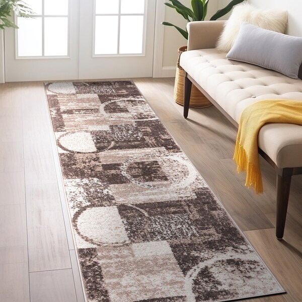 Contemporary Abstract Circle Design Soft Runner Rug 2'x10' Brown