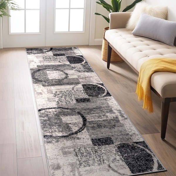 Contemporary Abstract Circle Design Soft Runner Rug 2'x10' Cream