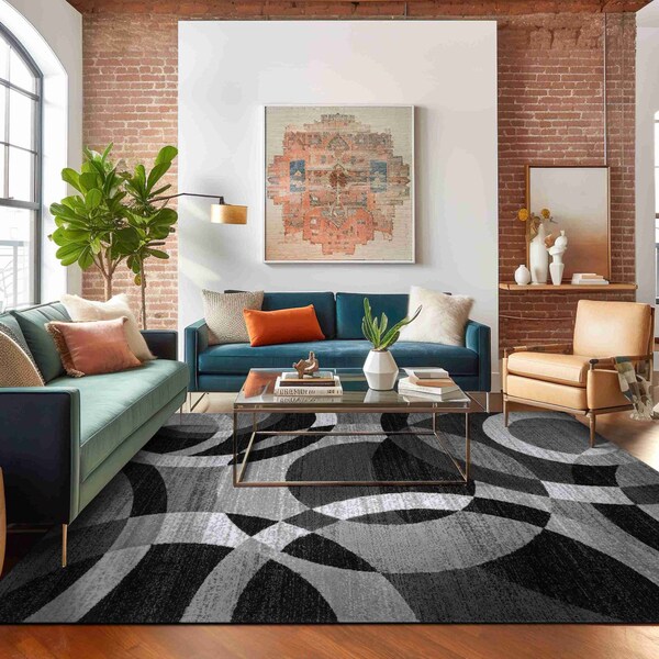 Contemporary Abstract Circles Area Rug in blue is a fusion of artistic flair and functionality. This elegant rug, featuring a contemporary circular pattern in a beautiful blue shade, is destined to be the centerpiece of any room - from the living room, bedroom, and dining room to the hallway, entryway, office, or study. Available in a wide range of sizes and shapes, including 2x3 small mats, 2x7 runner rugs ideal for hallways and kitchens, 3x5 and 5x8 area rugs for bedrooms or offices, 6 ft round and oval rugs for adding soft curves to your space, square rugs for creating a balanced modern look, and larger rectangular sizes such as 6x9, 8x10, 9x12, and 10x14 for spacious living or dining areas - ensuring a perfect fit for any indoor setting. Made from premium polypropylene and backed with sturdy jute, this rug offers a luxurious feel underfoot and remarkable durability, making it ideal for high-traffic areas of your home. It's heavy, dense pile and intricate surface texture combine to provide lasting comfort and resilience, while the rich blue color adds depth and sophistication to your decor. The Contemporary Abstract Circles Collection seamlessly blends modern design with practical functionality, offering a rug that is both visually striking and easy to maintain - a perfect addition for busy households that value both style and comfort.