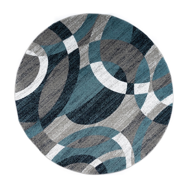 Contemporary Abstract Circles Soft Area Rug 6'6'' Round Blue
