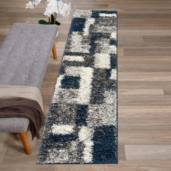 Contemporary Abstract Design Plush Shag Runner Rug 2'x7' Gray