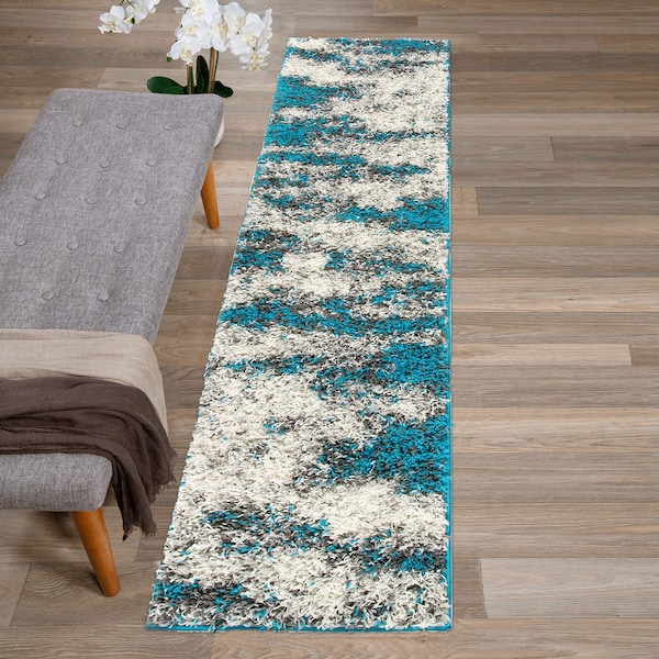 Contemporary Abstract Design Plush Shag Runner Rug 2'x7' Turquoise