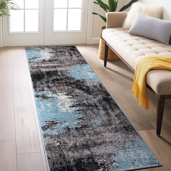 Contemporary Abstract Splash Non Shedding Soft Area Rug 2' x 7' Blue
