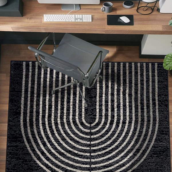 Enhance your home with the clean, modern lines of this geometric area rug, where form meets function. Its bold black and ivory colorway creates a high-impact look, while the 0.39-inch pile height ensures it integrates effortlessly into any space. Crafted with stain-resistant, no-shedding fibers, this rug offers both durability and style. Durability & Safety: Designed for long-lasting durability, this rug is a reliable choice for high-traffic spaces throughout your home. Crafted from safe, non-toxic materials, it provides a comfortable and secure surface for kids and pets. The sturdy jute backing enhances stability and longevity, ensuring years of dependable use. To prevent shifting and extend the life of your rug, we recommend using a rug pad for added safety and comfort. Comfort & Convenience: Expertly machine-woven using advanced technology, this rug offers the perfect balance of softness and durability. Its versatile design makes it an excellent addition to any room, effortlessly complementing various home decor styles. Available in a range of sizes, it fits seamlessly into different spaces. Designed for effortless maintenance, it requires only regular vacuuming and simple spot cleaning with mild detergent to maintain its beauty. Please note: While we strive for accuracy in our digital images, actual rug colors may vary slightly due to monitor settings. Minor variations in length and width may occur due to the manufacturing process, and patterns may adjust slightly depending on the selected size and shape. Spot clean with a solution of mild detergent and water or clean professionally. Regular vacuuming help rugs remain attractive and serviceable.
