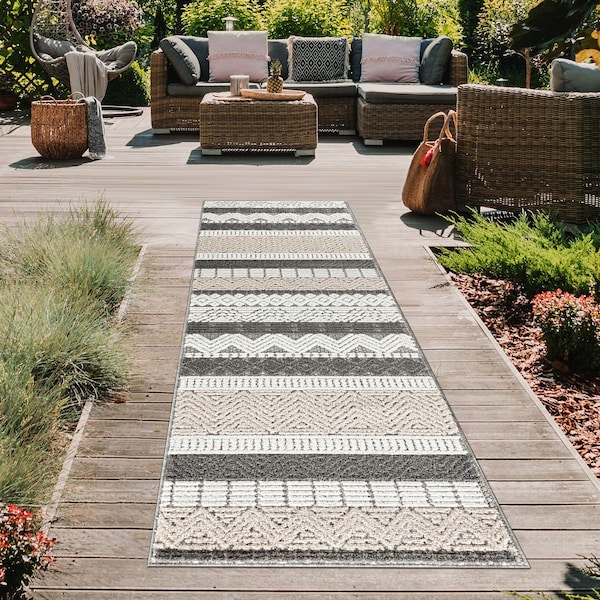 Contemporary Boho Indoor/Outdoor Runner Rug 2' x 7' Runner Gray