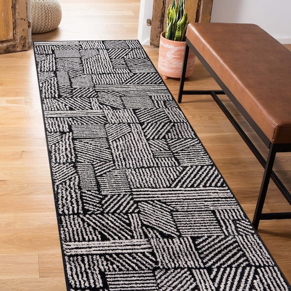 Contemporary Boho Stripes Non Shedding Soft Runner Rug 2 ft x 10 ft Black