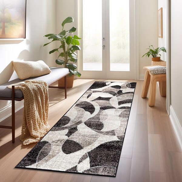 Explore the pinnacle of comfort and style with our contemporary abstract circles area rug featuring shades of blue, gray, black, and ivory. With It's lavish 0.39-inch pile height, this abstract rug provides a velvety soft ness that envelops any space in cozy comfort. Effortless upkeep, as it effortlessly withstands spot cleaning and vacuuming. Meticulously craft ed from premium polypropylene and fortified with a sturdy jute backing, this rug epitomizes enduring charm and durability. Exceptional Durability: Craft ed to endure daily wear and tear, our area rug is an ideal choice for high-traffic areas throughout your home. Safe for Kids and Pets: This rug provides a safe and comfortable flooring option for various areas in your home, including the living room, dining room, bedroom, entryway, nursery, kids room, playroom, dorm room, study, or home office. Sturdy Jute Backing: Our rug boasts a dependable jute backing that enhances It's stability and overall quality. Longevity and Safety Assurance: To enhance both the longevity and safety of your rug, we recommend using a rug pad underneath. This prevents unwanted shift ing and sliding, ensuring you enjoy your rug for years to come. Machine-Woven Comfort: Skillfully craft ed using advanced weaving technology, our rugs strike the perfect balance between plush comfort and enduring quality for any room. Versatile Sizing Options: Available in a range of sizes to ensure the perfect fit for any space in your home. Low-Maintenance Luxury: Enjoy the beauty of our rug with minimal effort. Regular vacuuming and simple spot cleaning with mild detergent are all it takes to maintain It's pristine appearance. Please note: While we strive to provide accurate digital images and product dimensions, please be aware that there may be slight variations in rug colors due to differences in computer monitors. Additionally, lengths and widths may slightly differ from the published dimensions. We make every effort to provide precise measurements, but please understand that some variation is possible. Furthermore, patterns may exhibit slight variations based on the shape and size chosen. Spot clean with a solution of mild detergent and water or clean professionally. Regular vacuuming help rugs remain attractive and serviceable.
