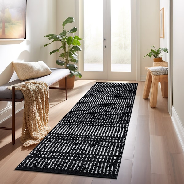 Contemporary Minimalistic Stripe LInes Runner Rug 2 ft x 7 ft Black