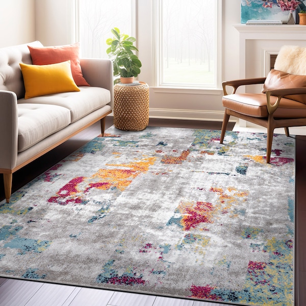 mmerse yourself in the world of comfort, durability, and contemporary charm with our modern abstract rug. With a plush 0.35-inch pile height, this rug offers a decadent texture and stays effortlessly clean with minimal upkeep-just a quick spot clean and vacuum. Skillfully crafted from premium polypropylene fabric and supported by a robust cotton backing, this rug personifies exceptional quality and timeless elegance, seamlessly infusing a dash of modern sophistication into any setting. Elevate your comfort and style with this exquisite rug.