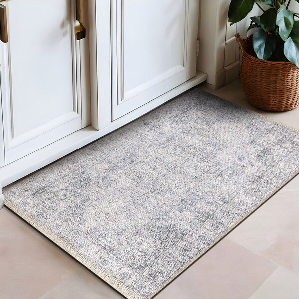 Distessed Medallion Machine Washable Area Rug 2 ft x 3 ft Blue