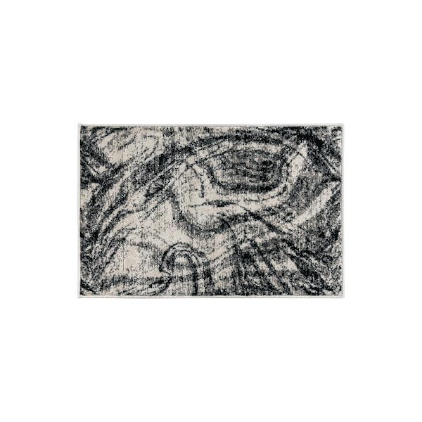 Distressed Abstract Area Rug 2 ft x 3 ft Black