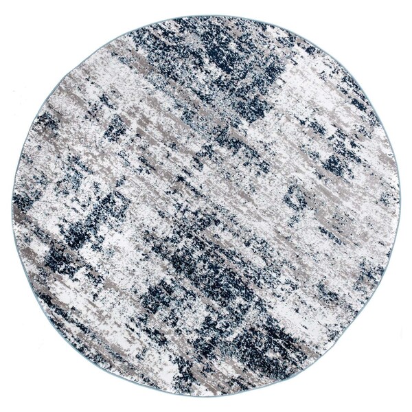 Distressed Abstract Area Rug 8 ft Round Blue