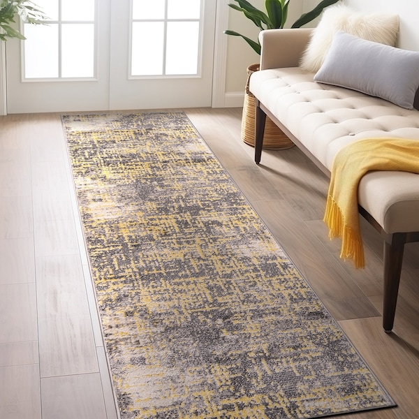 Distressed Abstract Design Non Shedding Soft Area Rug 2' x 7' Yellow