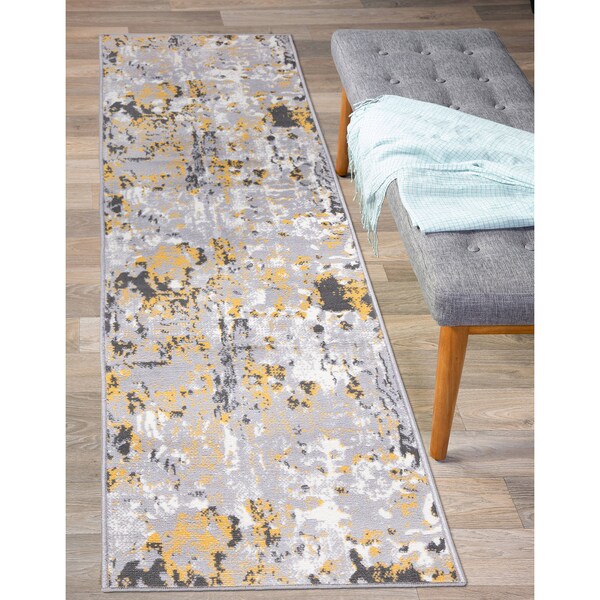 Distressed Abstract Yellow/Gray/Ivory Runner Rug 2'x7' Runner