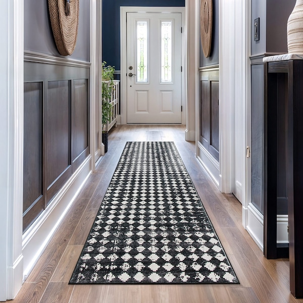 Geometric Distressed Abstract Washable Non Slip Runner Rug 2 ft x 10 ft Black