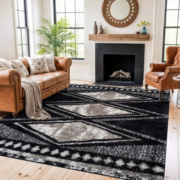 Modern, Minimalist style. Style your urban minimal homes with this Geometric shag rug featuring a cozy medium pile. The soft Geometric pattern adds inviting texture that families love. This version comes in deep Anthracite Dark Gray. It's Geometric design and medium pile provide a stylish yet cozy layer for living rooms, bedrooms, or play spaces. This rug offers a crisp, structured look and enhances depth with It's smoky gray tone, making it a versatile choice for modern households. Craft ed from 100% Polyester with a durable jute backing, It's kid and pet friendly, easy to clean, stain and fade resistant, and no shedding. Vacuum oft en, spot clean as needed, and rotate periodically for even wear. Durable Polyester Shag Construction - Made from 100% polyester with a sturdy jute backing, this medium-pile (0.57 in) shag rug is ideal for high-traffic spaces like living rooms, hallways, and entryways. OEKO-TEX certified and safe for family use. Use with a rug pad to prevent slipping and extend longevity. No-Shedding & Easy Maintenance - With a soft 0.57 in pile, this polyester shag rug is engineered to resist shedding, stains, and fading-making it low-maintenance and ideal for everyday messes. Spot clean or vacuum as needed. Soft & Pet/Kid Friendly - The plush medium pile offers a cozy feel underfoot while resisting messes and wear. Perfect for homes with children or pets, providing both comfort and durability. Please note: Colors may vary slightly due to monitor settings. Minor size and pattern variations are normal due to the manufacturing process.