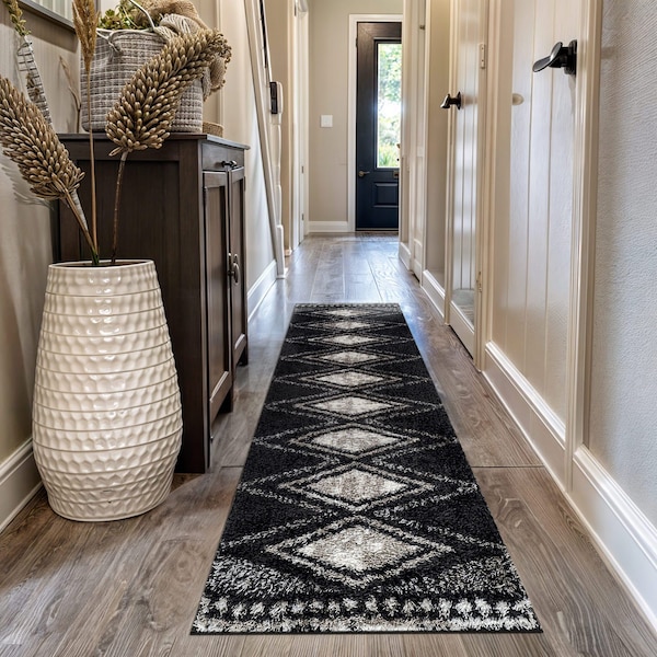 Modern, Minimalist style. Style your urban minimal homes with this Geometric shag rug featuring a cozy medium pile. The soft Geometric pattern adds inviting texture that families love. This version comes in deep Anthracite Dark Gray. It's Geometric design and medium pile provide a stylish yet cozy layer for living rooms, bedrooms, or play spaces. This rug offers a crisp, structured look and enhances depth with It's smoky gray tone, making it a versatile choice for modern households. Craft ed from 100% Polyester with a durable jute backing, It's kid and pet friendly, easy to clean, stain and fade resistant, and no shedding. Vacuum oft en, spot clean as needed, and rotate periodically for even wear. Durable Polyester Shag Construction - Made from 100% polyester with a sturdy jute backing, this medium-pile (0.57 in) shag rug is ideal for high-traffic spaces like living rooms, hallways, and entryways. OEKO-TEX certified and safe for family use. Use with a rug pad to prevent slipping and extend longevity. No-Shedding & Easy Maintenance - With a soft 0.57 in pile, this polyester shag rug is engineered to resist shedding, stains, and fading-making it low-maintenance and ideal for everyday messes. Spot clean or vacuum as needed. Soft & Pet/Kid Friendly - The plush medium pile offers a cozy feel underfoot while resisting messes and wear. Perfect for homes with children or pets, providing both comfort and durability. Please note: Colors may vary slightly due to monitor settings. Minor size and pattern variations are normal due to the manufacturing process.