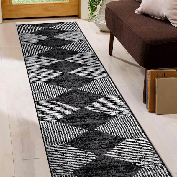 Geometric Stripe Runner Rug 2 ft 3 in x 8 ft Black