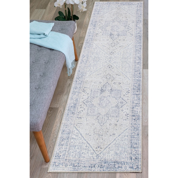Medallion Boho Machine Washable Blue Runner Rug 2'6''x7'
