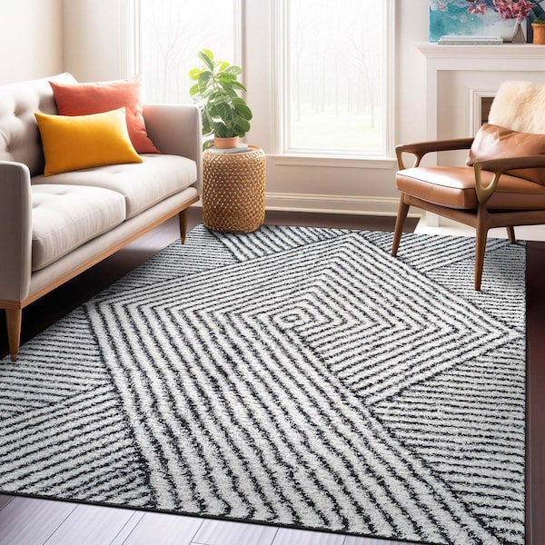 Contemporary, Minimalist style. Style your clean monochrome decors with this Minimal Stripe shag rug featuring a cozy medium pile. The soft minimal stripe pattern adds inviting texture that families love. This version comes in crisp White. It's minimal stripe design and medium pile provide a stylish yet cozy layer for living rooms, bedrooms, or play spaces. This rug adds minimalist detail and brightens your space, making it a versatile choice for modern households. Craft ed from 100% Polyester with a durable jute backing, It's kid and pet friendly, easy to clean, stain and fade resistant, and no shedding. Vacuum oft en, spot clean as needed, and rotate periodically for even wear. Durable Polyester Shag Construction - Made from 100% polyester with a sturdy jute backing, this medium-pile (0.57 in) shag rug is ideal for high-traffic spaces like living rooms, hallways, and entryways. OEKO-TEX certified and safe for family use. Use with a rug pad to prevent slipping and extend longevity. No-Shedding & Easy Maintenance - With a soft 0.57 in pile, this polyester shag rug is engineered to resist shedding, stains, and fading-making it low-maintenance and ideal for everyday messes. Spot clean or vacuum as needed. Soft & Pet/Kid Friendly - The plush medium pile offers a cozy feel underfoot while resisting messes and wear. Perfect for homes with children or pets, providing both comfort and durability. Please note: Colors may vary slightly due to monitor settings. Minor size and pattern variations are normal due to the manufacturing process.