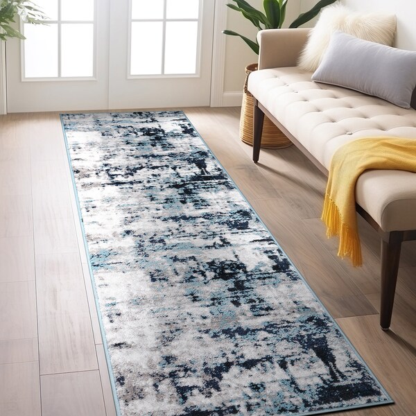 Modern Abstract Reflections Runner Rug 2'x7' Blue