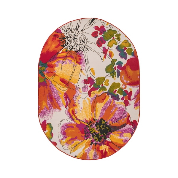 Modern Bright Flowers Non-Slip Area Rug 5 ft x 7 ft Oval Multi