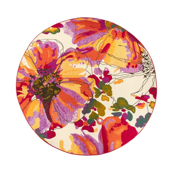 Modern Bright Flowers Non-Slip Area Rug 8 ft Round Multi