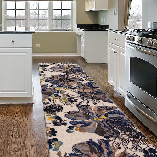 Modern Bright Flowers Non-Slip Runner Rug 2' x 7' Cream