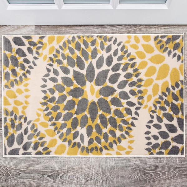 Modern Floral Circles Design 2' x 3' Yellow Area Rug
