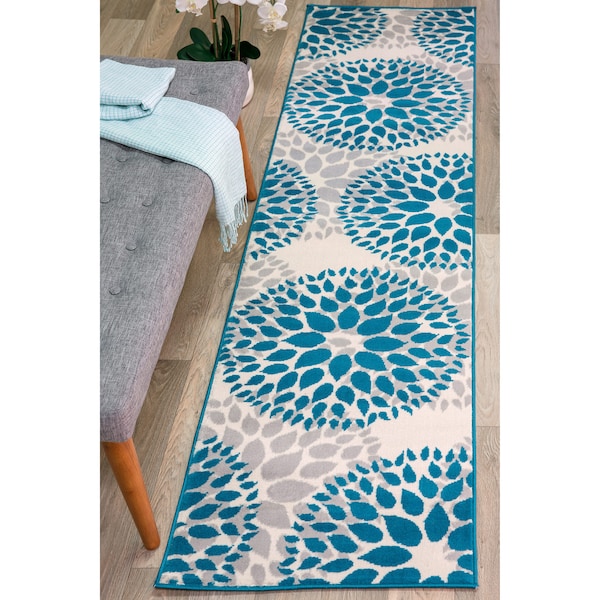 Modern Floral Circles Design 2'x10' Blue Runner Rug