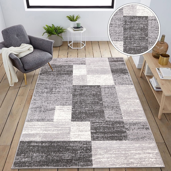 Modern Geometric Boxes Gray/Ivory Area Rug 5'x7'