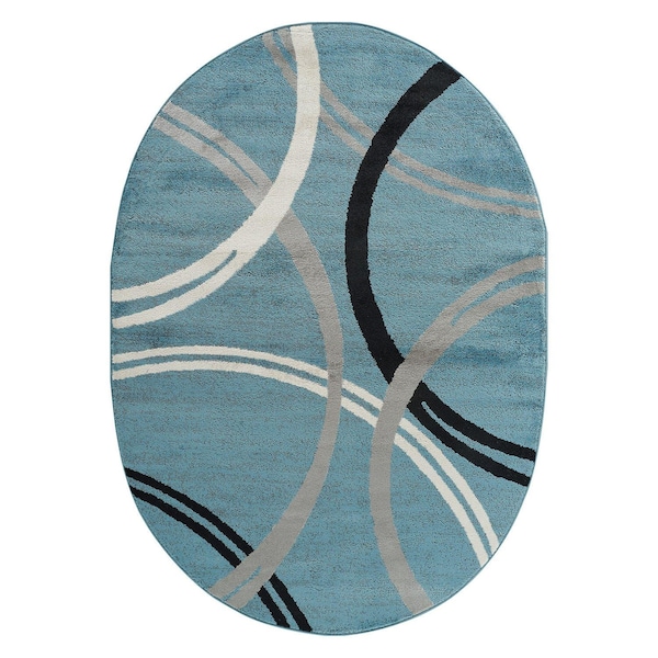 Modern Wavy Circles Design Area Rug 5 ft x 7 ft Oval Blue