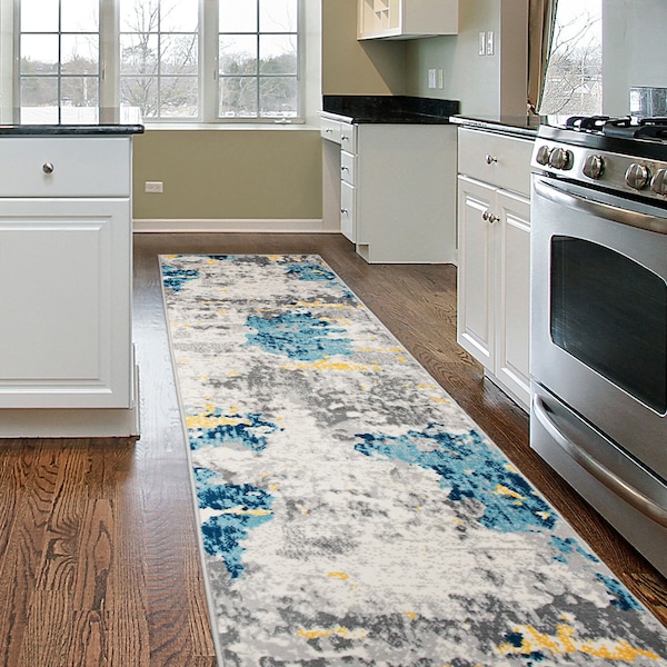 Sky Collection Modern Abstract Runner Rug 2'x7' Cream