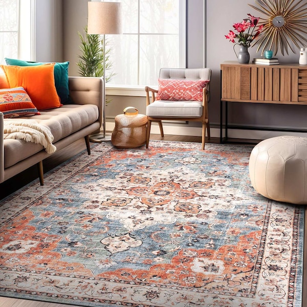 Blending classic medallion motifs with modern machine-made precision, this rug delivers soft ness, durability, and easy maintenance. It's machine-washable polyester fibers allow for hassle-free cleaning, while the non-slip backing ensures safety and stability on hard floors. Perfect for those who love traditional design with contemporary convenience. Machine-Washable for Effortless Maintenance: Say goodbye to the hassle of spot cleaning-our rugs are fully machine washable, making upkeep simple and stress-free. Made from high-quality synthetic polyester, they maintain their shape and soft ness even aft er multiple washes. For small rugs, a standard home washer works perfectly, while larger sizes may require a commercial machine. Non-Slip Backing for Added Safety: No more shift ing or sliding-our rugs come with a durable, non-slip backing that keeps them securely in place on hard floors. Designed for kid- and pet-friendly homes, they prevent trips and falls while offering a stain-resistant, shed-free surface that stands up to daily messes. Soft & Comfortable for Everyday Living: Experience luxurious soft ness underfoot with our cozy, plush pile-perfect for busy households. Whether It's muddy paw prints or everyday spills, our rugs are built to withstand it all while adding warmth and style to any space. Eco-Friendly, Convenient Shipping: Shipped folded for reduced packaging waste. Simply lay flat upon arrival, and the rug will regain It's shape in a few days. Color and size may vary slightly due to screen settings. Vacuum carefully without a beater bar. Machine wash under a cold and gentle cycle. Do not use bleach. Line dry. Professional cleaning is recommended for stubborn stains. Please note that this machine-washable rug may shrink by 1-2 inches aft er the first wash.