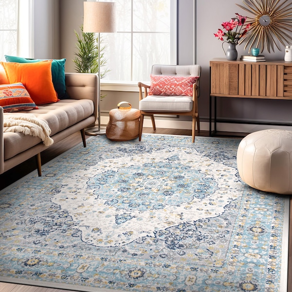 This beautiful rug is unique, stylish and ready to accent your decor with authentic elegance. This rug features bold colors and distressed modern design. The power loomed Construction adds durability to this rug, ensuring it will be a favorite for a long time. Tip: We recommend the use of a non-skid pad to keep the rug in place on smooth surfaces. All rug sizes are approximate. Please note: Due to the difference of monitor colors, some rug colors may vary slightly. We try to represent all rug colors accurately.
