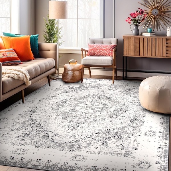 Traditional Medallion Area Rug 5' x 7' Gray