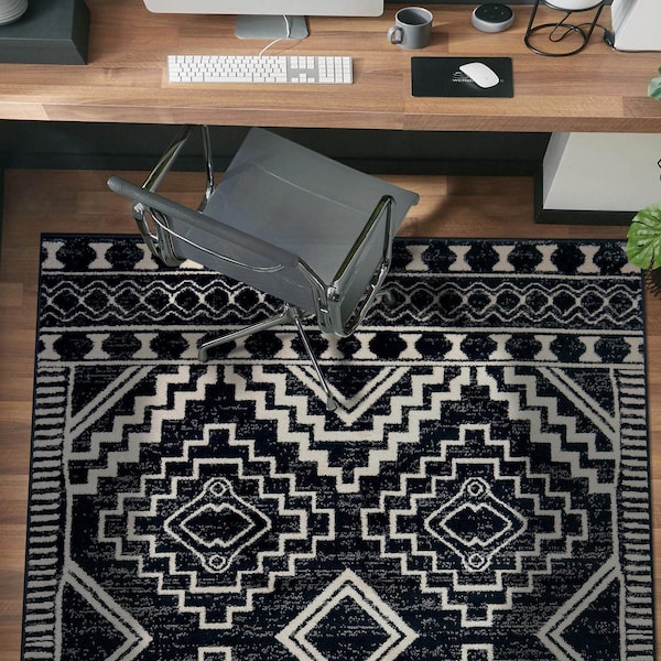 Enhance your home with the clean, modern lines of this geometric area rug, where form meets function. Its bold black and ivory colorway creates a high-impact look, while the 0.39-inch pile height ensures it integrates effortlessly into any space. Crafted with stain-resistant, no-shedding fibers, this rug offers both durability and style. Durability & Safety: Designed for long-lasting durability, this rug is a reliable choice for high-traffic spaces throughout your home. Crafted from safe, non-toxic materials, it provides a comfortable and secure surface for kids and pets. The sturdy jute backing enhances stability and longevity, ensuring years of dependable use. To prevent shifting and extend the life of your rug, we recommend using a rug pad for added safety and comfort. Comfort & Convenience: Expertly machine-woven using advanced technology, this rug offers the perfect balance of softness and durability. Its versatile design makes it an excellent addition to any room, effortlessly complementing various home decor styles. Available in a range of sizes, it fits seamlessly into different spaces. Designed for effortless maintenance, it requires only regular vacuuming and simple spot cleaning with mild detergent to maintain its beauty. Please note: While we strive for accuracy in our digital images, actual rug colors may vary slightly due to monitor settings. Minor variations in length and width may occur due to the manufacturing process, and patterns may adjust slightly depending on the selected size and shape. Spot clean with a solution of mild detergent and water or clean professionally. Regular vacuuming help rugs remain attractive and serviceable.