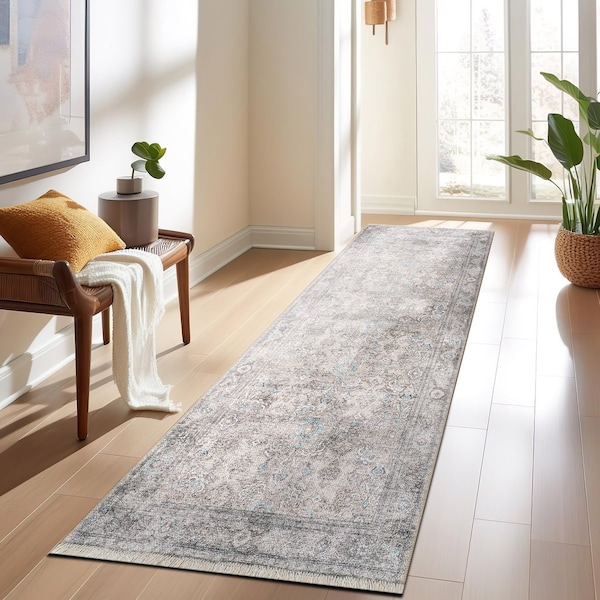 Immerse your living space in vintage distressed global-inspired oriental style with this machine-washable polyester premium quality area rug. The captivating traditional motifs and bold colors infuse excitement into your decor. Unroll this rug in different sizes to masterfully elevate your home. Craft ed for easy maintenance and sustainability, the flat-woven rug is made from OEKO-TEX certified premium recycled materials, harmonizing timeless style with eco-conscious choices. Durable Elegance for Busy Spaces: Engineered for everyday resilience, our machine-washable rugs are ideal for high-traffic areas. Kid and pet-friendly, perfect for high-traffic areas like living rooms, dining rooms, bedrooms, entryways, nurseries, kids rooms, playrooms, dorm rooms, studies, or home offices. The fringes on both ends enhance the rugs graceful beauty. Elegance in Every Fiber: Elegant fiber texture with a flat pile, premium craft smanship rug, and stain-resistant properties. Conveniently fIt's in your home washing machine, with polyester machine-made construction ensuring exceptional comfort and durability. Available in various sizes: 8x10, 5x7, 2x7 runner, 2x10 runner, 2x3, 3x5, 9x12, 10x14. Effortless Maintenance for Lasting Beauty: Stress-free upkeep with regular vacuuming and easy stain removal using a mild detergent or carpet cleaner. Mess-Proof Comfort: Safe for everyday indoor high foot traffic and resilient against lifes unpredictable messes from kid or pet activity. Please Note: Digital images and product dimensions are as accurate as possible, but slight variations may occur due to differences in computer monitors. Lengths and widths may vary, and patterns may differ slightly based on the shape and size selected. Vacuum carefully without a beater bar. Machine wash under a cold and gentle cycle. Do not use bleach. Line dry. Professional cleaning is recommended for stubborn stains. Please note that this machine-washable rug may shrink by 1-2 inches aft er the first wash.