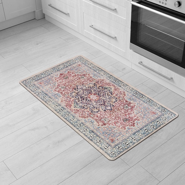 Enjoy the fusion of traditional aesthetics and modern functionality with our Oriental style anti-fatigue mat. With a substantial 0.79-inch thickness, it cushions your feet, knees, and back during long hours on your feet. The ornate Oriental design serves as a striking decorative element, while the high-quality rubber backing keeps the mat securely in place. Ergonomic Anti-Fatigue Design: Enjoy exceptional support for your feet, knees, and back with our mat’s cushioned, ergonomic surface. Ideal for long periods of standing in kitchens, offices, or workspaces, it helps reduce fatigue and improve posture. Designed with a durable non-slip backing, this mat firmly adheres to any surface to help prevent slipping and tripping. Its beveled edges further enhance safety by keeping the mat flat and secure. Eco-Friendly & Versatile Use: Crafted from high-quality recycled materials, this mat is an environmentally responsible choice without compromising on comfort or durability. Its simple yet elegant design seamlessly fits into kitchens, bathrooms, laundry rooms, offices, and more, making it a great choice for homes with kids and pets. Superior Durability & Easy Maintenance: Made from high-quality, water-repellent PVC material with a recycled composition, this mat is stain- and oil-resistant, ensuring it remains looking pristine even in high-traffic areas. Cleaning is a breeze-simply wipe it down with a damp cloth or mild detergent and let it air dry. Please note that digital images and product dimensions are as accurate as possible. Due to monitor differences, some mat colors may vary slightly. Dimensions and patterns may also vary marginally from those listed. We strive to provide precise measurements, but slight variations can occur. Clean with damp cloth and mild detergent, air dry.
