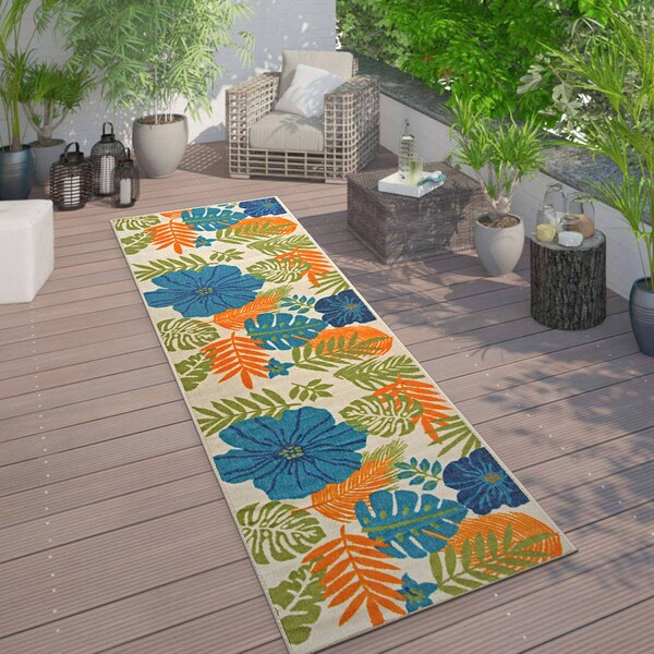 Tropical Floral Leaves Indoor/Outdoor Runner Rug 2'x7' Multi