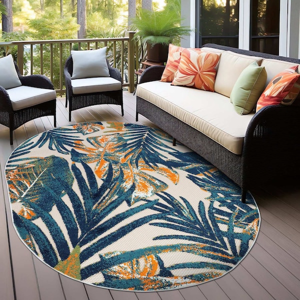 Tropical Leaves Indoor/Outdoor Area Rug 5 ft x 7 ft Oval Multi