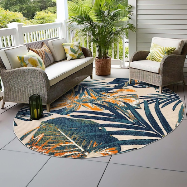 Tropical Leaves Indoor/Outdoor Area Rug 8 ft Round Multi