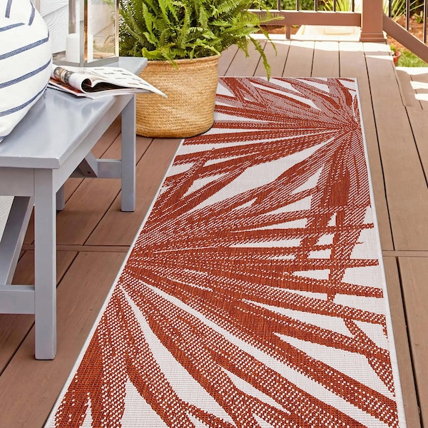 Tropical Leaves Nature Inspired Indoor/Outdoor Runner Rug 2' x 7' Rust