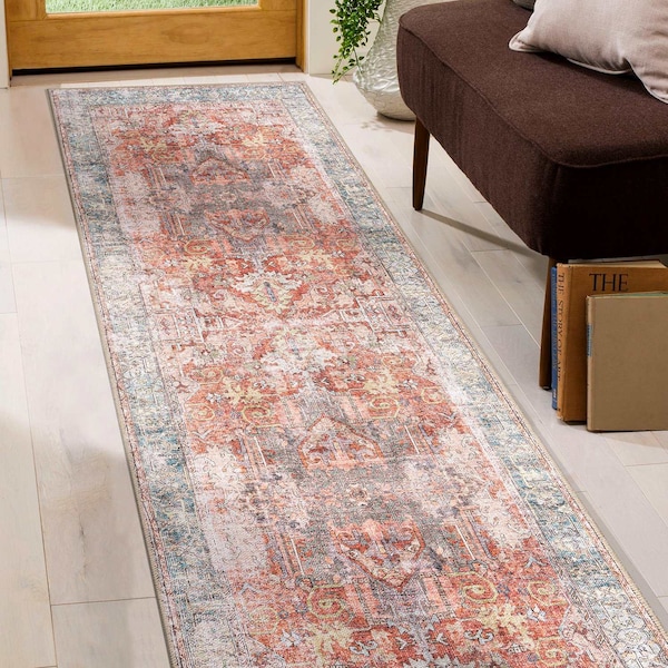 Vintage Inspired Distressed Machine Washable Runner Rug 2 ft 6 in x 7 ft Multi