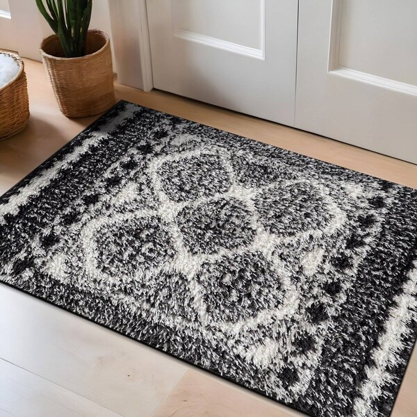 Bohemian, Contemporary style. Style your cozy white-themed nurseries with this Geometric shag rug featuring a cozy medium pile. The soft Geometric pattern adds inviting texture that families love. This version comes in crisp White. It's Geometric design and medium pile provide a stylish yet cozy layer for living rooms, bedrooms, or play spaces. This rug introduces bold, zigzag movement and brightens your space, making it a versatile choice for modern households. Craft ed from 100% Polyester with a durable jute backing, It's kid and pet friendly, easy to clean, stain and fade resistant, and no shedding. Vacuum oft en, spot clean as needed, and rotate periodically for even wear. Durable Polyester Shag Construction - Made from 100% polyester with a sturdy jute backing, this medium-pile (0.57 in) shag rug is ideal for high-traffic spaces like living rooms, hallways, and entryways. OEKO-TEX certified and safe for family use. Use with a rug pad to prevent slipping and extend longevity. No-Shedding & Easy Maintenance - With a soft 0.57 in pile, this polyester shag rug is engineered to resist shedding, stains, and fading-making it low-maintenance and ideal for everyday messes. Spot clean or vacuum as needed. Soft & Pet/Kid Friendly - The plush medium pile offers a cozy feel underfoot while resisting messes and wear. Perfect for homes with children or pets, providing both comfort and durability. Please note: Colors may vary slightly due to monitor settings. Minor size and pattern variations are normal due to the manufacturing process.